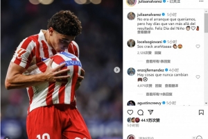 阿爾瓦雷斯社媒曬出慶祝進(jìn)球的照片,配文:“這不是我們想要的開(kāi)局,但有一些日子超越了比賽結(jié)果,兒童節(jié)快樂(lè)!”