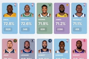 體育資訊8月20日訊 今日,數(shù)據(jù)媒體NBA University曬出一組季后賽籃下得分統(tǒng)計數(shù)據(jù)。