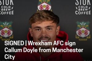 體育資訊8月22日訊 英冠升班馬雷克瑟姆官方宣布21歲曼城后衛(wèi)卡勒姆-多伊爾加盟,簽約至2029年。據(jù)悉,多伊爾的轉(zhuǎn)會費為750萬鎊,曼城擁有回購條款及25%的二轉(zhuǎn)分成。