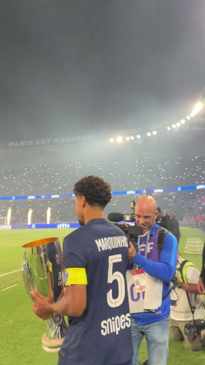 巴黎在王子公園球場展示了球隊上賽季獲得的獎杯,以及歐洲超級杯獎杯,俱樂部官方社媒曬出視頻,配文:“我們的冠軍?!?/p>