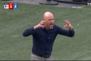 體育資訊08月23日訊 德甲首輪,勒沃庫森vs霍芬海姆,比賽第53分鐘,霍芬海姆再入一球,勒沃庫森連丟兩球1-2遭反超,主帥滕哈赫在場邊非常不滿。