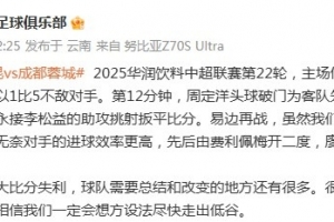 體育資訊8月23日訊 在中超聯(lián)賽第22輪中,云南玉昆主場(chǎng)1-5負(fù)于成都蓉城。由于球隊(duì)連續(xù)的大比分輸球,云南玉昆俱樂部也在賽后公開致歉。