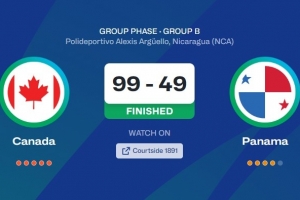 體育資訊8月24日訊 今天結(jié)束的一場(chǎng)男籃美洲杯小組賽,加拿大男籃99比49大勝巴拿馬男籃50分。