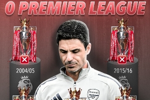 阿森納已經(jīng)21年未奪得英超冠軍,自從上次奪冠(03/04賽季)之后,阿森納已經(jīng)5次獲得英超亞軍,期間經(jīng)歷了15/16賽季的藍(lán)狐奇跡和近幾年的三連亞。