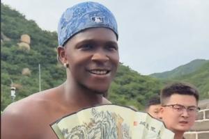 今日,愛德華茲游玩了長(zhǎng)城并開啟了直播。