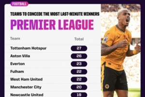 體育資訊8月27日訊 在英超歷史上,有一些球隊(duì)經(jīng)常會(huì)成為最后一分鐘被絕殺的背景板。OPTA盤(pán)點(diǎn)了英超歷史最后一分鐘被絕殺次數(shù)最多球隊(duì)top10,熱刺27次居首。