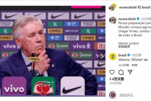安切洛蒂社媒曬自己在新聞發(fā)布會(huì)中的照片,并寫道:“我們的世界杯備戰(zhàn)現(xiàn)在開始,我們希望以強(qiáng)大的實(shí)力、團(tuán)結(jié)的精神、肩負(fù)著整個(gè)巴西的夢(mèng)想出征世界杯,讓我們一起加油!”