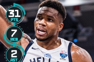 此役,希臘球星字母哥出戰(zhàn)29分02秒,投籃20中14,罰球4中3,砍下31分7板2助1斷,另有5次失誤,正負(fù)值-3。