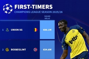 體育資訊8月29日訊 德國轉(zhuǎn)會市場統(tǒng)計(jì)了歐冠新軍的身價(jià),并列出榜單,圣吉羅斯8610萬歐居首,凱拉特1280萬歐最低。