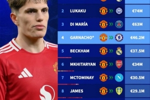 德轉(zhuǎn)曬出曼聯(lián)出球球員收入的排行榜,加納喬以4620萬歐元轉(zhuǎn)會費成為曼聯(lián)隊史售價第四高的球員。超越了2003年貝克漢姆加盟皇家馬德里時的3750萬歐元。C羅2009年以9400萬歐元轉(zhuǎn)會皇馬仍是曼聯(lián)隊史最高售價紀錄,德轉(zhuǎn)表示,短期內(nèi)極有可能無人能超越。