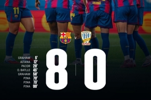 體育資訊8月31日訊 西甲女足首輪,巴薩女足8-0大勝升班馬阿爾哈馬,順利取得開(kāi)門(mén)紅。克勞迪婭-皮納上演帽子戲法,格雷厄姆-漢森梅開(kāi)二度,此外艾塔娜、帕若爾和奧娜-巴特列也各有斬獲。