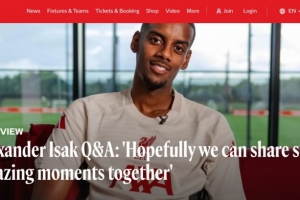 體育資訊9月2日訊 利物浦已經(jīng)官宣引進(jìn)紐卡中鋒伊薩克,后者也接受了俱樂(lè)部官網(wǎng)的問(wèn)答采訪。