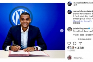 阿坎吉社媒曬出與國米簽約的照片,配文:“對即將在國米迎來的新篇章感到興奮。全新的開始,巨大的挑戰(zhàn),以及一個我可以稱之為家的偉大俱樂部!”