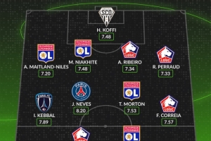 后衛(wèi):奈爾斯(里昂,7.20分)、穆薩-尼亞卡特(里昂,7.48分)、亞歷山德羅-里貝羅(里爾,7.34分)、羅曼-佩羅(里爾,7.33分)