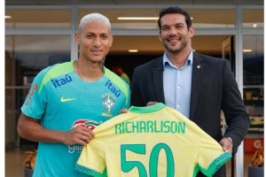 體育資訊9月3日訊 理查利森獲贈為巴西隊出戰(zhàn)50場里程碑紀(jì)念球衣,他在社交媒體上發(fā)表感想。