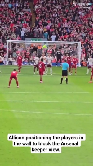 在索博打入制勝任意球前,阿利森特地過來指導維爾茨和加克波在排人墻時擋住拉亞視線。