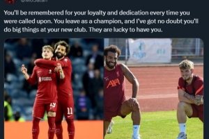 薩拉赫寫道:“你的忠誠(chéng)和每一次上場(chǎng)所表現(xiàn)出來(lái)的投入將會(huì)被銘記,你作為一個(gè)冠軍離開(kāi),我毫不懷疑你會(huì)在新東家成就偉大事業(yè),擁有你是他們的幸運(yùn)。”