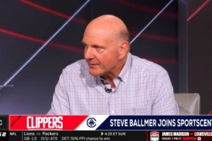 體育資訊9月5日訊 今早,快船老板鮑爾默現(xiàn)身ESPN節(jié)目《SportsCenter》,和知名女記者Ramona Shelburne進(jìn)行對(duì)話。