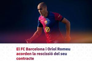 巴塞羅那足球俱樂部與一線隊(duì)球員奧里奧爾-羅梅烏在轉(zhuǎn)會(huì)窗口期內(nèi)達(dá)成協(xié)議,終止其與俱樂部的合同。