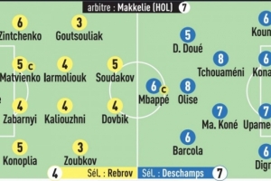 體育資訊9月6日訊 法國(guó)在本輪世預(yù)賽2-0擊敗烏克蘭,《隊(duì)報(bào)》也在賽后為雙方首發(fā)評(píng)分。奧利塞和瓊阿梅尼獲得8分,姆巴佩僅獲6分,杜埃5分是法國(guó)隊(duì)最低。