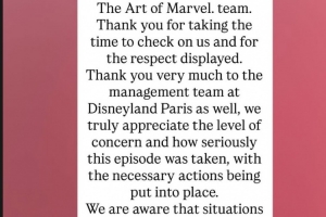 “致巴黎迪士尼樂園管理團隊,親愛的各位,我們對紐約迪士尼酒店-漫威藝術(shù)的支持和關(guān)懷表示感謝。感謝你們抽出時間關(guān)心我們,并展現(xiàn)出尊重。我們也非常感謝巴黎迪士尼樂園的管理團隊,我們真誠地感激你們對此事件的重視以及所采取的必要措施。