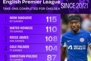 體育資訊9月7日訊 squakwa統(tǒng)計(jì)了20-21賽季以來的切爾西英超成功過人情況,馬杜埃凱居首,僅3人仍在陣中。