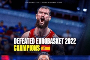 如此一來,格魯吉亞本屆歐錦賽已經(jīng)先后擊敗上屆歐錦賽的冠軍和亞軍。小組賽格魯吉亞83比69擊敗西班牙,這場比賽也讓他們在相互交手戰(zhàn)績上占優(yōu),最終他們和西班牙都是2勝3負(fù),憑借交手戰(zhàn)績優(yōu)勢,他們拿到小組第4出線,西班牙則小組出局。