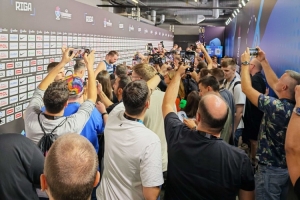 體育資訊9月8日訊 男籃歐錦賽1/8決賽,斯洛文尼亞84-77擊敗意大利,晉級(jí)八強(qiáng)。賽后東契奇出現(xiàn)在混合采訪區(qū)接受采訪時(shí),被記者圍得水泄不通。歐媒Eurohoops評(píng)論到:“東契奇的出現(xiàn)讓混合采訪區(qū)陷入了混亂。”
