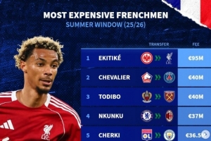 今夏法國(guó)球員轉(zhuǎn)會(huì)費(fèi)榜:歐元