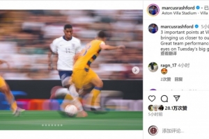 拉什福德社媒曬出比賽照片,配文:“在維拉公園球場拿下重要三分,讓我們更接近目標(biāo)!球隊表現(xiàn)出色,現(xiàn)在專注于周二的重要比賽(客戰(zhàn)塞爾維亞)!”
