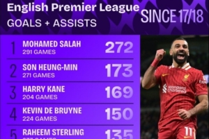 體育資訊9月9日訊 2017年加盟利物浦以來,薩拉赫在進攻端展示出了極高的效率。根據(jù)Squawka的數(shù)據(jù)統(tǒng)計,埃及邊鋒共出戰(zhàn)291場英超比賽,直接參與272球,同期斷層領(lǐng)先。