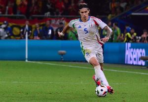 意大利本場比賽排出迪馬爾科、巴斯托尼、G-曼奇尼和迪洛倫佐的四后衛(wèi)首發(fā),而上一場比賽中則是迪馬爾科、卡拉菲奧里、巴斯托尼和迪洛倫佐搭檔首發(fā)。