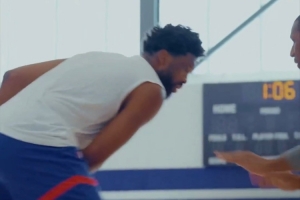 體育資訊9月10日訊 今日,76人官方推特曬出一組恩比德和喬治的訓(xùn)練片段。