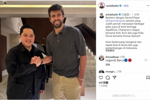 托希爾與皮克會(huì)面,他在社交媒體上曬出合照,配文:“與皮克會(huì)面,他是一位在足球最高級(jí)別賽事中贏得過(guò)多項(xiàng)冠軍頭銜的球員,包括俱樂(lè)部層面上的歐冠冠軍,以及代表西班牙國(guó)家隊(duì)贏得的歐洲杯和世界杯。我們討論了全球足球趨勢(shì)以及印尼足球的發(fā)展?!?/p>