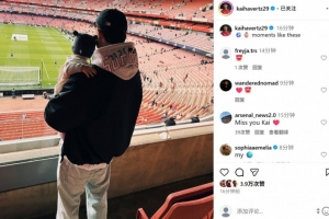 本場(chǎng)比賽因傷缺戰(zhàn)的哈弗茨也抱著自己的孩子來(lái)到現(xiàn)場(chǎng)觀戰(zhàn),球員在個(gè)人社媒曬照寫道:“??????就像這樣的時(shí)刻!”