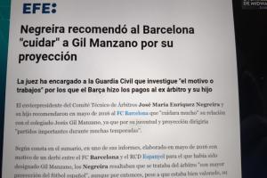 根據(jù)案卷記錄,在2016年5月針對(duì)希爾-曼薩諾執(zhí)法的巴薩對(duì)陣西班牙人德比戰(zhàn)所撰寫的報(bào)告中,內(nèi)格雷拉父子強(qiáng)調(diào)該裁判是“西班牙足球界最具發(fā)展?jié)摿Φ牟门小?,盡管當(dāng)時(shí)其雖獲良好評(píng)價(jià),但執(zhí)法水平“僅屬良好”。