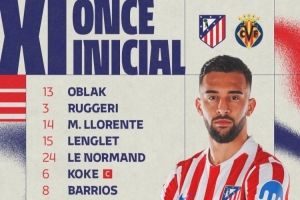 馬競(jìng)首發(fā):13-奧布拉克、3-魯杰里、14-馬科斯-略倫特、15-朗格萊、24-勒諾爾芒、6-科克、8-巴勃羅-巴里奧斯、20-朱利亞諾-西蒙尼、23-尼古拉斯-岡薩勒斯、7-格列茲曼、19-阿爾瓦雷斯