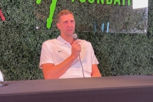 體育資訊9月14日訊 今日獨行俠名宿諾維茨基的基金會舉辦了第七屆名人網(wǎng)球賽,諾維茨基在新聞發(fā)布會上談到了獨行俠狀元弗拉格。
