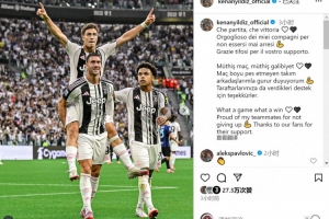 伊爾迪茲社媒曬出弗拉霍維奇背起他慶祝進(jìn)球的照片,配文:“多么精彩的比賽,多么美妙的勝利!為我的隊(duì)友們沒有放棄感到驕傲,感謝球迷們的支持!”