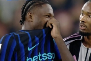 而僅僅6分鐘后,馬庫斯-圖拉姆的弟弟凱夫倫-圖拉姆頭球為尤文圖斯扳平比分,接著第91分鐘,阿季奇破門絕殺,隨后鏡頭拍到圖拉姆兄弟倆用球衣掩住嘴巴,似乎在聊天竊笑,這引發(fā)國米球迷的嚴重不滿。