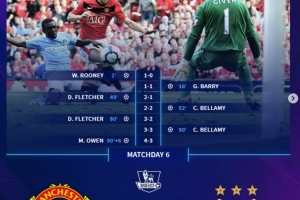 體育資訊9月14日訊 本輪英超將迎來焦點戰(zhàn)曼市德比,德轉(zhuǎn)也盤點了兩支球隊在近些年的一些經(jīng)典比賽,具體如下: