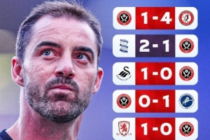 目前,謝菲聯(lián)在英冠聯(lián)賽6戰(zhàn)6負(fù)積0分,進1球失12球,位居積分榜倒數(shù)第一。