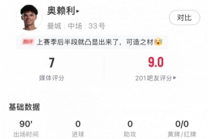 體育資訊9月15日訊 英超第4輪曼市德比,曼城主場3-0擊敗曼聯(lián),奧賴利此役出任曼城左后衛(wèi)打滿全場,球員數(shù)據(jù)如下: