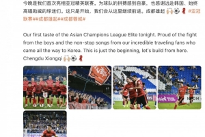 在蓉城隊史首場亞冠正賽惜敗之后,周定洋在社媒曬出現(xiàn)場照片并配文寫道:“今晚是我們首次亮相亞冠精英聯(lián)賽。為球隊的拼搏感到自豪,也感謝遠(yuǎn)赴韓國、始終高唱助威的球迷們。這只是開始,我們會從這里繼續(xù)前進(jìn)。成都雄起 ????????”