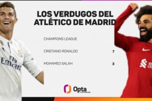 在歐冠賽場上,薩拉赫7次面對馬競打進3球。在這項賽事中,薩拉赫面對床單軍團的進球數(shù)量僅次于C羅(12場7球)。
