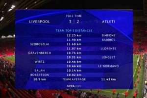 體育資訊9月18日訊 歐冠聯(lián)賽階段第一輪比賽,利物浦主場(chǎng)3-2擊敗馬競(jìng),本場(chǎng)比賽朱利亞諾-西蒙尼跑動(dòng)12.23公里全場(chǎng)最多。
