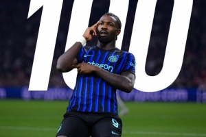 本場比賽小圖拉姆梅開二度,這也是他代表國米各項賽事出場第100次里程碑之戰(zhàn),他已經(jīng)為球隊貢獻38球24助攻。