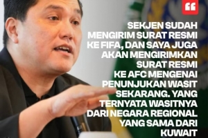 托希爾表示,印尼足協(xié)已就安排科威特裁判吹罰世預(yù)賽一事向國際足聯(lián)和亞足聯(lián)正式提交了抗議信。