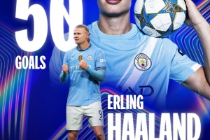 這一球也是哈蘭德個人職業(yè)生涯的歐冠第50球,歐冠官方更新海報送上祝賀。