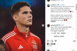 效力于本菲卡的烏克蘭中場蘇達(dá)科夫賽后在ins上寫道:“一場慘痛的失利,我們需要更堅強(qiáng),昂首挺胸繼續(xù)前進(jìn),感謝球迷們直到最后的支持?!?/p>